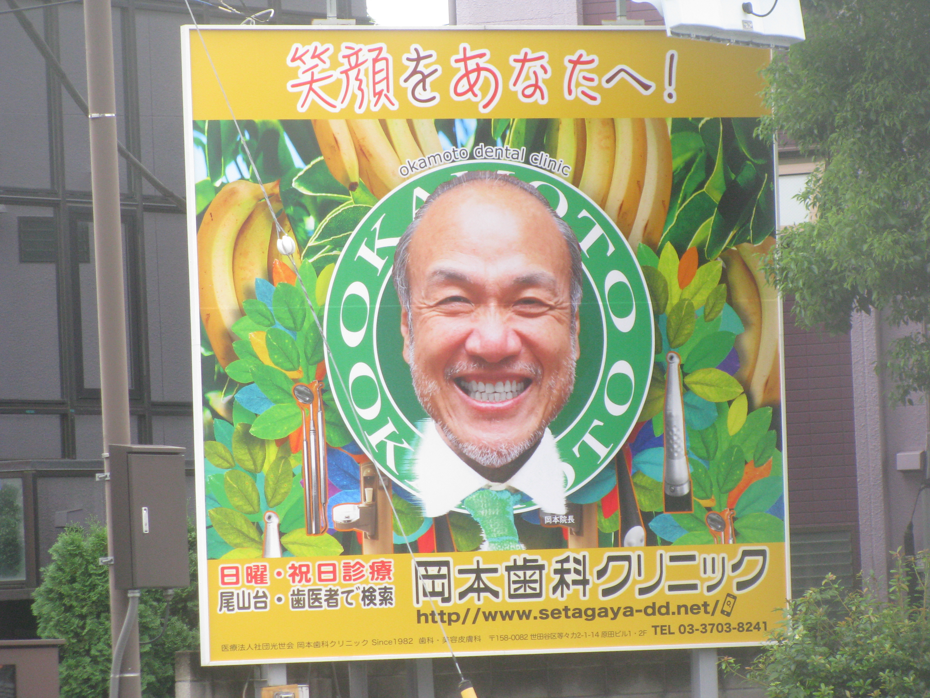 と言わんばかりに環八の路上に忽然と姿をあらわしたのは、われらが尾山台・岡本歯科クリニックの院長先生です!