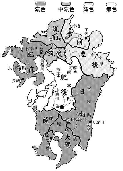 肥前国・肥後国の間には筑後国(現福岡県南部)が在った。