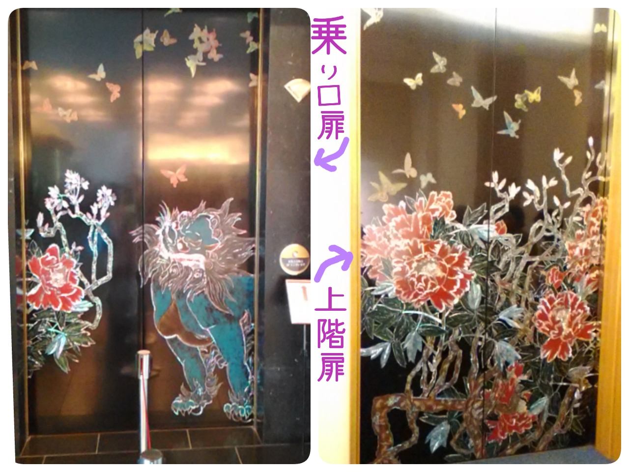 エレベーターの表扉が螺鈿で装飾されているのです。