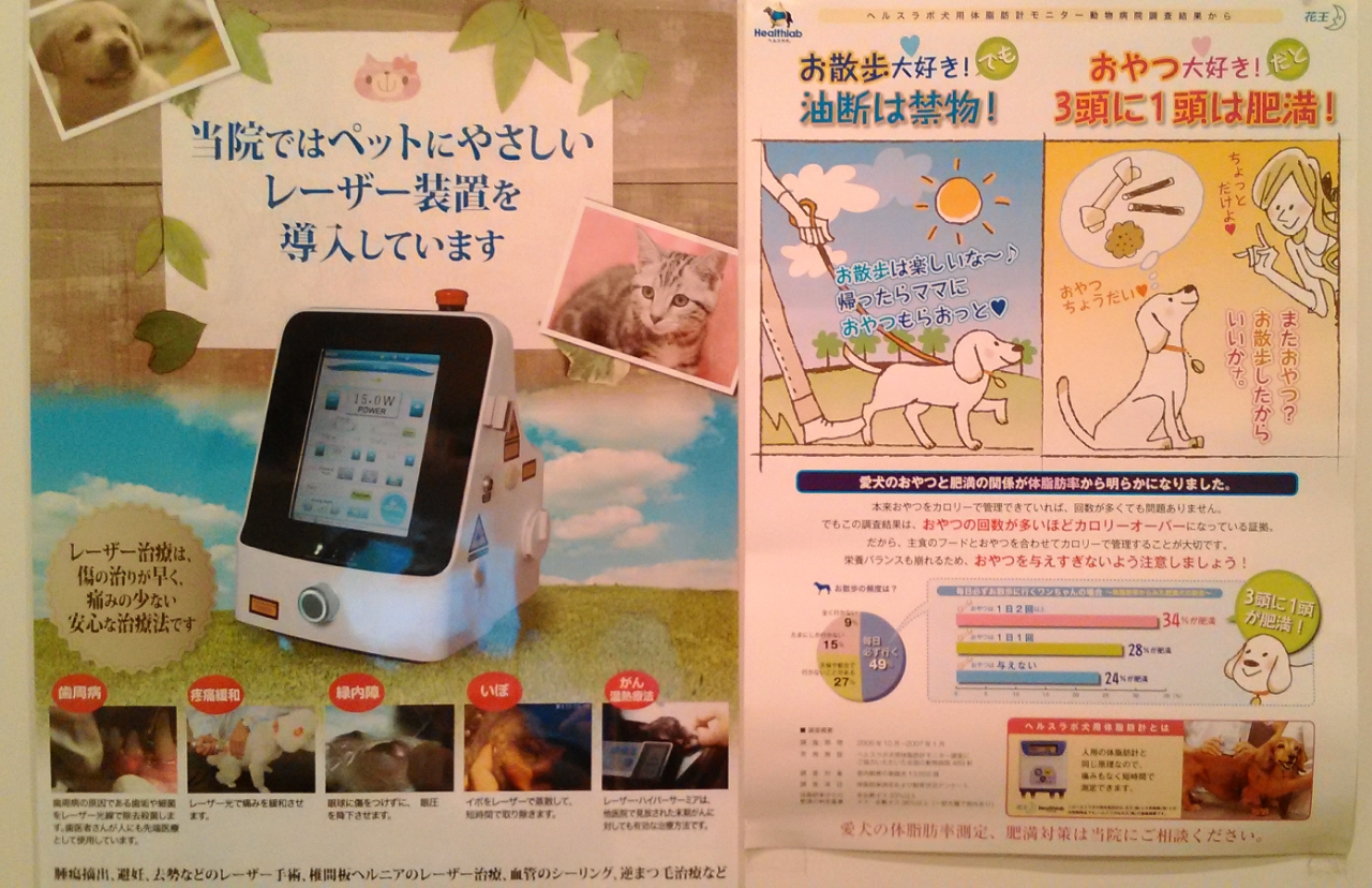 左がレーザー治療、右は体脂肪測定器の導入の紹介です。